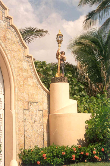Built from 1924-28 this moorish/mediterranean structure is located on the largest estate in Palm Beach. The site is continuous from Ocean to interncoastal end, thus it's name "Mar-A-Lago"